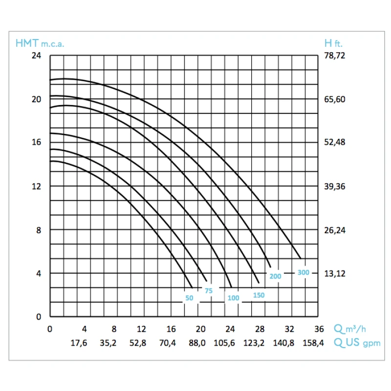 | Caudal m3/h a 10mca | 11,5 | 14 | 18 | 21,5 | 24,3 | 29 |