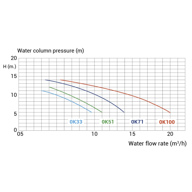 La bomba de filtración Ondina Kripsol nos ofrece potencias desde 7 M3/hora hasta 17,2 m3/hora en el modelo más potente de la gama. En la tabla, el fabricante nos indica los niveles de caudal en M3/hora que tienen cada una de ellas. Tenemos que pensar, el tipo de filtro que tenemos o vamos a poner, diámetro del mismo, volumen de agua de la piscina y nuestras necesidades para no comprar un modelo que sea incompatible y así todo el conjunto funcionará en equilibrio.