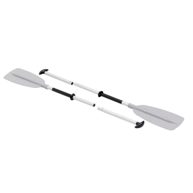 La gran diferencia con su hermana gemela la canoa Adventure, es que este modelo incluye dos remos y un inflador manual de pié.