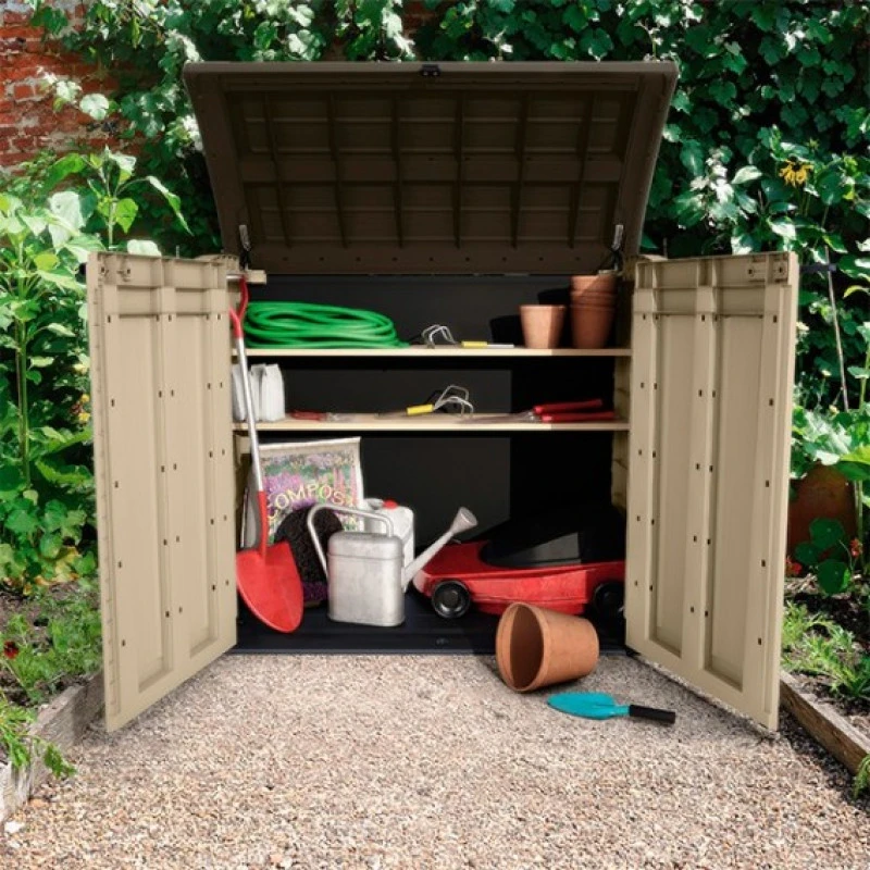 Está fabricado con los mejores materiales y puede almacenar en su interior el correspondiente filtro de arena para depurar el agua de la piscina, incluye puertas abatibles para un acceso fácil y reborde reforzado.