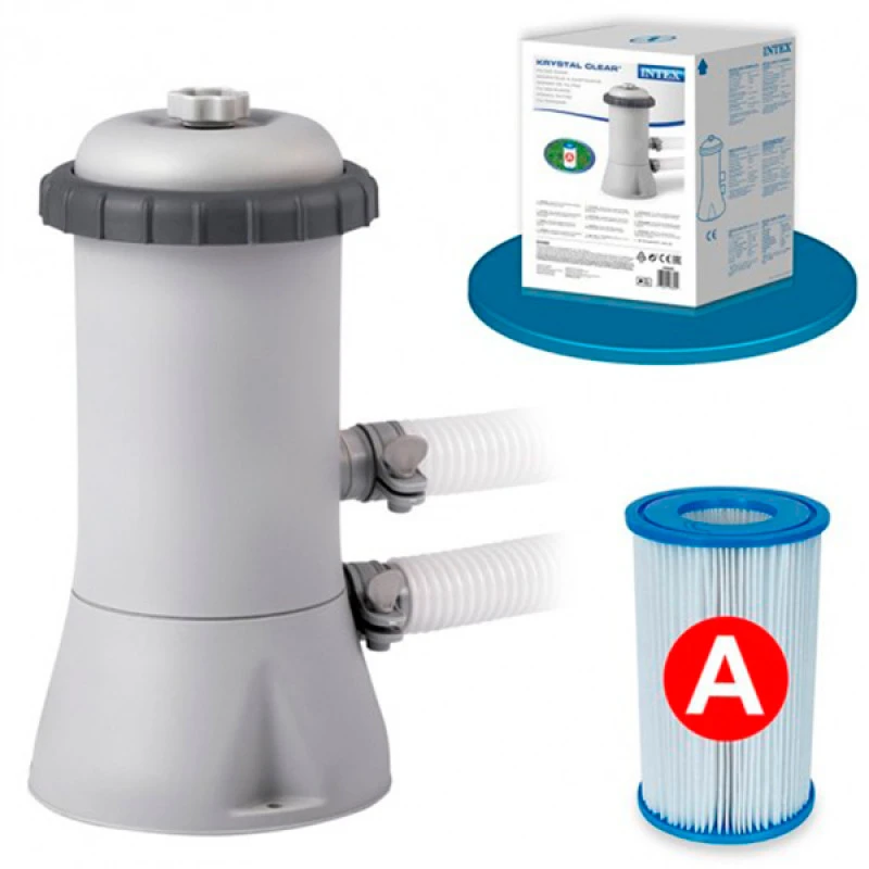 Depuradora de cartucho de alta gama del fabricante número de 1 de accesorios y piscinas INTEX. Sistema de filtración por cartucho para piscinas de hasta 8000 litros. Este modelo de depuradora utiliza de 2.006l/h cartuchos tipo A incluído con el producto. Por otro lado, requiere una potencia de 45W.