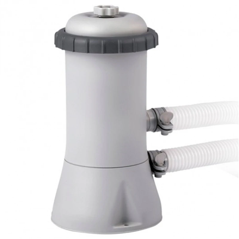 Sistema de filtración de cartucho para piscinas desmontables hasta 8.000 litros de volumen. Este sistema de filtración es muy utilizado en piscinas de Ø244, Ø305 y Ø366 de diámetro, ya sea piscinas de PVC desmontables o piscinas de sobre suelo de Acero.