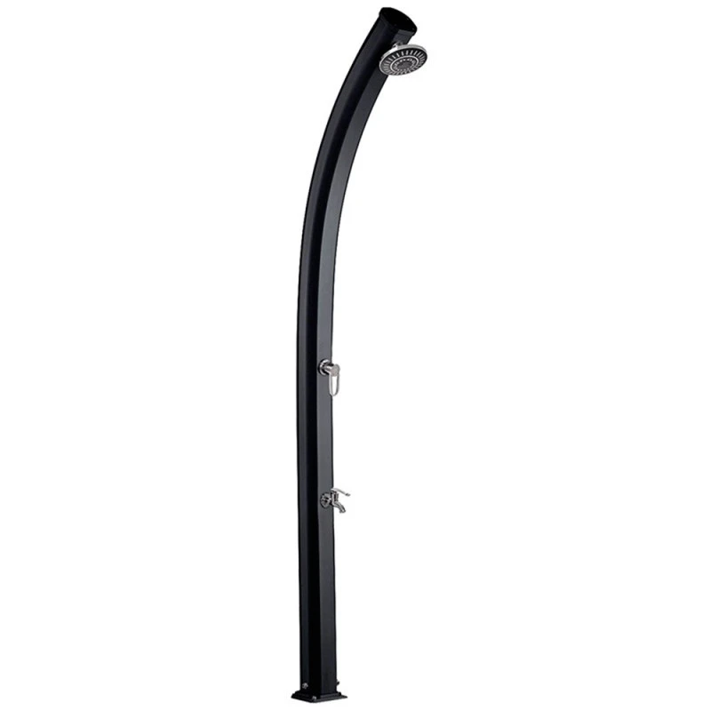 Este tipo de ducha para aire libre contiene una reserva de capacidad variable de agua que se calienta de forma natural mediante la luz solar directa.