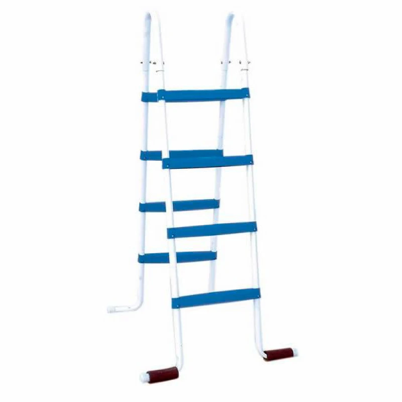 Escalera para piscinas desmontables elevadas de 120 y 132cm., fabricada con tubo de acero galvanizado de 25 mm. de diámetro y 1mm. de grosor, que ofrece una gran resistencia.