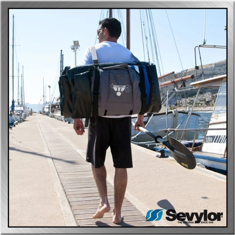El modelo Riviera está confeccionado con PVC de alta resistencia reforzado con una capa de nylon. Para incrementar, aún más, la fortaleza y consistencia del kayak, se han incorporado 3 cámaras de aire en los laterales de la embarcación. De esta manera, ante el riesgo de sufrir pinchazos o roturas, el kayak seguirá funcionando y podrá utilizarlo para regresar a la orilla. Una medida de seguridad realmente práctica.