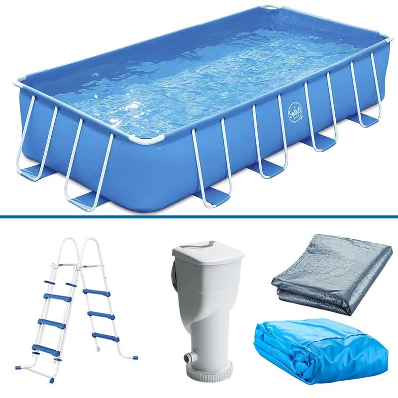 La piscina desmontable de Mountfield tiene una superficie rectangular de 4,88 m de largo, 2,44 m de anchor y una altura de 1,07 m. Su estructura de tubos metálicos proporciona a la piscina estabilidad y aguante, y su liner, de color azul, está fabricado en PVC de 3 capas para otorgarle más resistencia y durabilidad. Incluye sujeciones extra para reforzar la estructura y darle más consistencia. Los contrafuertes, situados en cada extremo de la piscina, están fabricados en el mismo material metálico que el de la estructura. La piscina Frame rectangular viene equipada con depuradora y accesorios.