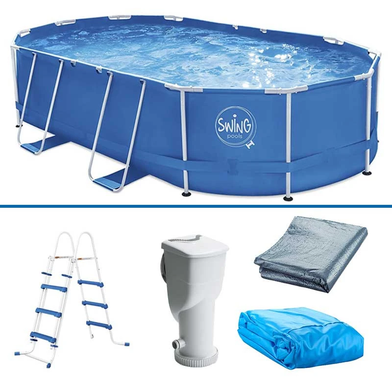 Piscina ovalada rectangular 6,10 x 3,66 x 1,22m y sus accesorios