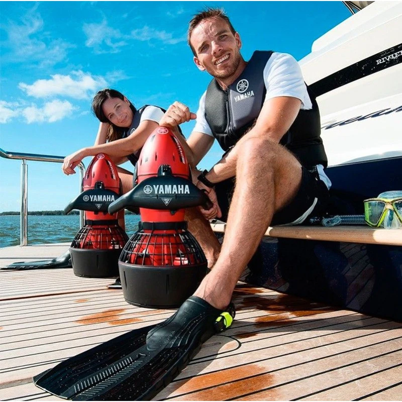 Los propulsores acuáticos son el complemento perfecto en nuestras inmersiones. Nos permiten ahorrar energía y disfrutar, aún más, del paisaje submarino. Con este modelo de Yamaha podremos alcanzar una velocidad máxima de 3,2 km/h, y una profundidad de 20 metros. Además, nos proporciona una autonomía de 60 minutos. Incorpora una batería sellada de plomo ácido, que necesita un mantenimiento ocasional y que es de carga rápida, lo que nos permitirá tenerla siempre a punto.