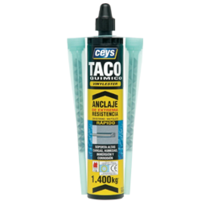 El taco químico Ceys es perfecto para anclajes muy resistentes en soportes huecos o frágiles. Tiene una capacidad de 300 ml.